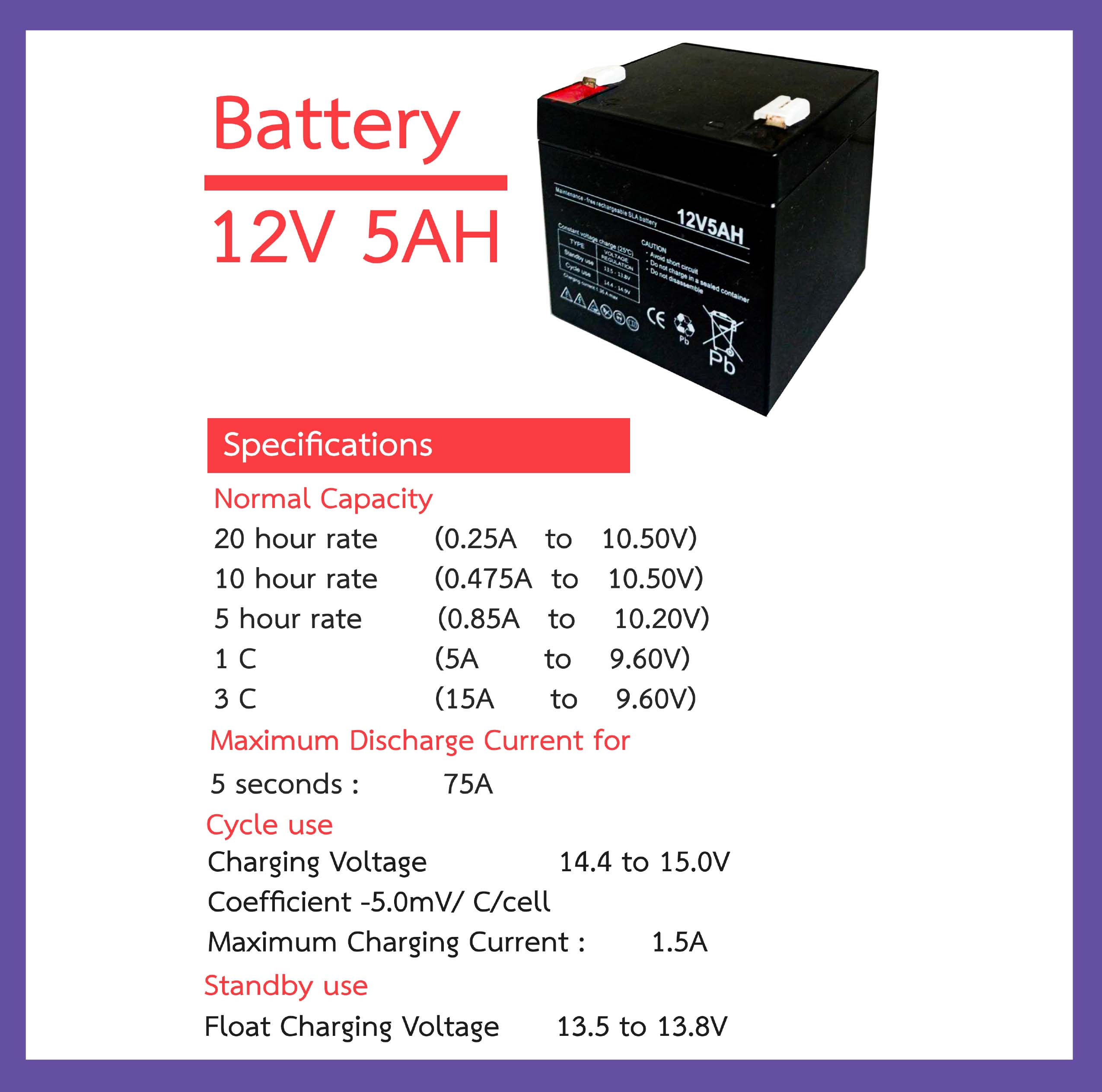 เหมาะสำหรับเครื่องสำรองไฟที่ใช้แบตขนาด 12V 5AH
